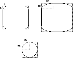 Abgerundete Rechtecke werden mit runden Ecken gezeichnet. Die Methoden drawRoundRect() und fillRoundRect() für das Zeichnen abgerundeter Rechtecke sind den Methoden für die einfachen Rechtecke ähnlich; sie verfügen jedoch über zwei zusätzliche Argumente für die Breite und Höhe der Rundung der Ecken. Diese beiden Argumente bestimmen, wo der Bogen entlang der Rechteckkanten beginnt. Das erste Argument definiert die Rundung auf der horizontalen und das zweite auf der vertikalen Ebene. Größere Werte für die Breite und Höhe der Rundung lassen das Rechteck insgesamt stärker gerundet erscheinen. Werte, die der Breite und Höhe des Rechtecks entsprechen, erzeugen einen Kreis. In Abb. 9.4 finden Sie einige Beispiel für abgerundete Ecken.