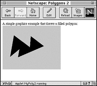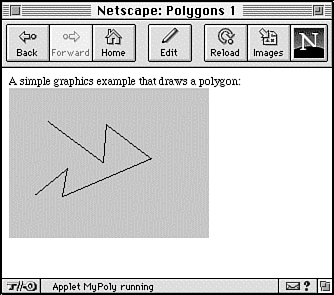 Beachten sie, daß Java ein Polygon automatisch schließt. Wenn Sie keine geschlossene Form wünschen, müssen Sie für ein ungefülltes Polygon die Methode drawPolyline() verwenden, die am Ende dieses Abschnitts beschrieben wird.