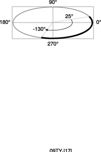 Anschließend müssen Sie nur noch den Anfangswinkel und Winkelbereich ermitteln. Dieser Bogen beginnt leider nicht an so schönen Punkten wie 90 oder 180 Grad, deshalb müssen Sie ein wenig experimentieren. Der Anfangspunkt liegt etwa bei 25 Grad und der Bogen verläuft dann im Uhrzeigersinn um 130 Grad (siehe Abb. 9.17).