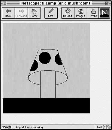 Das folgende Beispiel erläutert ein Applet, das viele der hier erläuterten Grafikelemente dazu benutzt, einfache Grundformen zu zeichnen. Es handelt sich um eine Tischlampe mit einem gepunkteten Schirm (so eine Art kubistischer Pilz). Listing 9.1 enthält den kompletten Code für diese Lampe, während Abb. 9.19 das Ergebnis zeigt.