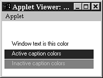 Eine der neuen Funktionen in Java 1.1 bietet die Möglichkeit, das Farbschema der Systemfarben zu verwenden, welches der Benutzer für den Desktop, die Fenster und andere Elemente der Bildschirmanzeige ausgewählt hat.